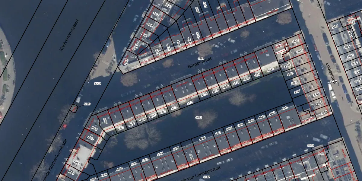 Het adres is gelegen op perceel 4873 in de sectie T en de kadastrale gemeente Amsterdam. De kadastrale aanduiding is aldus ASD16-T-4873. Het perceel is 173 m² groot. Dat is kleiner dan de gemiddelde perceeloppervlakte in Amsterdam, dat op 245,33 m² ligt. Het kleinste perceel in de kadastrale gemeente is 0 m² groot. De grootste perceeloppervlakte is 3,3 ha. Op het perceel liggen in totaal 8 adressen. De laatste wijziging in het de Basisregistratie Kadaster (BRK) was op 10-01-2007.