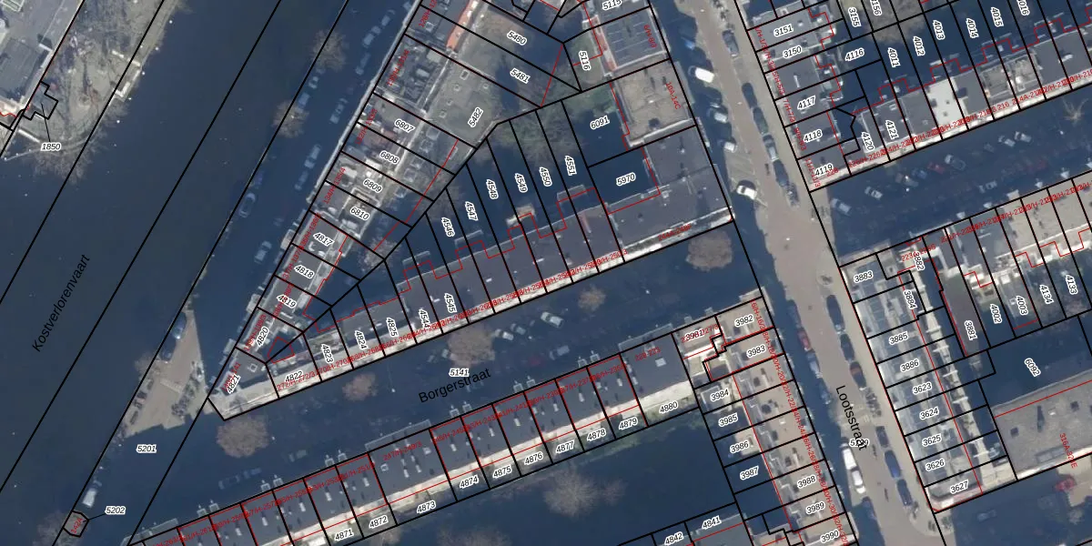 Het adres is gelegen op perceel 4549 in de sectie T en de kadastrale gemeente Amsterdam. De kadastrale aanduiding is aldus ASD16-T-4549. Het perceel is 168 m² groot. Dat is kleiner dan de gemiddelde perceeloppervlakte in Amsterdam, dat op 245,33 m² ligt. De grootste perceeloppervlakte in de kadastrale gemeente is 3,3 ha. De kleinste oppervlakte bedraagt 0 m². Op het perceel zijn 4 adressen aanwezig. In de Basisregistratie Kadaster (BRK) werden de grenzen van het perceel geregistreerd op 10-01-2007.