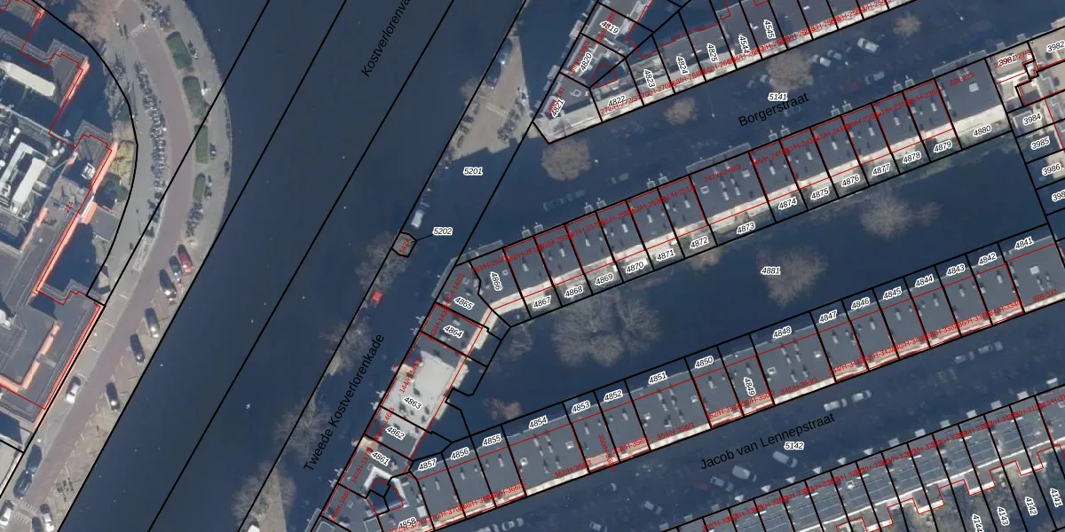 Het adres is gelegen op perceel 4867 in de sectie T en de kadastrale gemeente Amsterdam. De kadastrale aanduiding is aldus ASD16-T-4867. Het perceel is 91 m² groot. Dat is kleiner dan de gemiddelde perceeloppervlakte in Amsterdam, dat op 245,33 m² ligt. De grootste perceeloppervlakte in de kadastrale gemeente is 3,3 ha. De kleinste oppervlakte bedraagt 0 m². Er zijn 4 adressen aanwezig op het perceel. De huidige grenzen van het perceel zijn digitaal in de Basisregistratie Kadaster (BRK) geregistreerd op 10-01-2007.