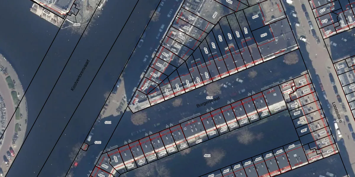 Het adres is gelegen op perceel 4824 in de sectie T en de kadastrale gemeente Amsterdam. De kadastrale aanduiding is aldus ASD16-T-4824. Het perceel is 82 m² groot. Dat is kleiner dan de gemiddelde perceeloppervlakte in Amsterdam, dat op 245,33 m² ligt. De grootste perceeloppervlakte in de kadastrale gemeente is 3,3 ha. De kleinste oppervlakte bedraagt 0 m². Op het perceel liggen in totaal 4 adressen. De huidige grenzen van het perceel zijn digitaal in de Basisregistratie Kadaster (BRK) geregistreerd op 10-01-2007.