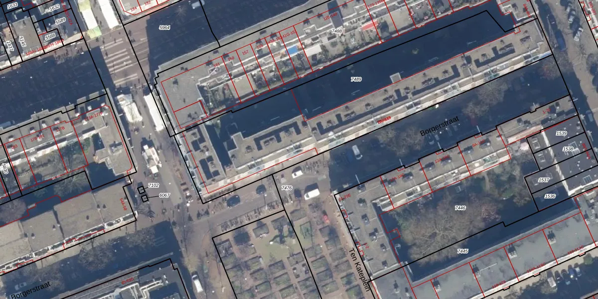 Borgerstraat 34-B is gelegen op kadastraal perceel ASD13Q7489. Deze kadastrale aanduiding is uniek en wordt gebruikt door het Kadaster om eigendomsrechten en andere zakelijke rechten vast te leggen. Het perceel maakt onderdeel uit van de kadastrale gemeente Amsterdam.