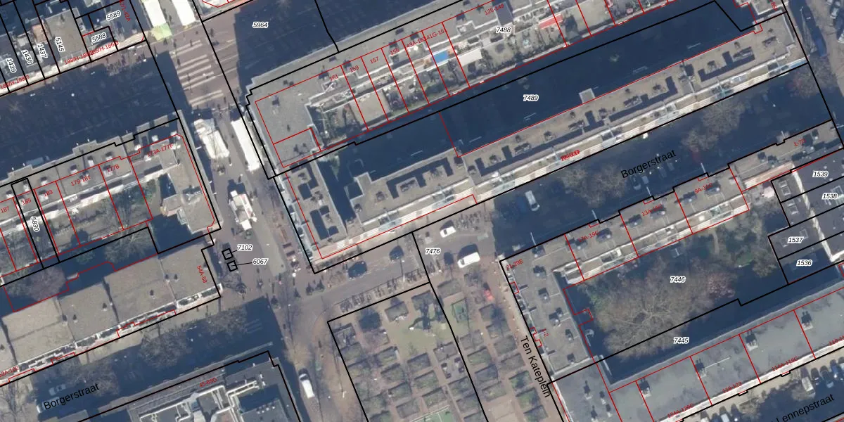 Borgerstraat 38-A is gelegen op kadastraal perceel ASD13Q7489. Deze kadastrale aanduiding is uniek en wordt gebruikt door het Kadaster om eigendomsrechten en andere zakelijke rechten vast te leggen. Het perceel maakt onderdeel uit van de kadastrale gemeente Amsterdam.