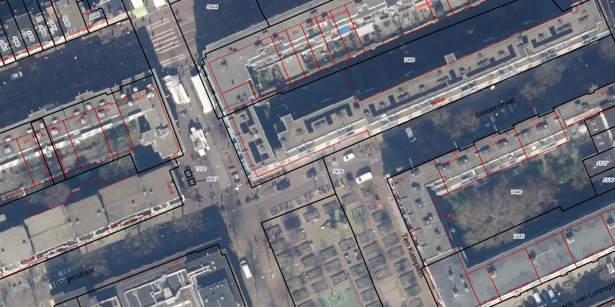 Borgerstraat 40-B is gelegen op kadastraal perceel ASD13Q7489. Deze kadastrale aanduiding is uniek en wordt gebruikt door het Kadaster om eigendomsrechten en andere zakelijke rechten vast te leggen. Het perceel maakt onderdeel uit van de kadastrale gemeente Amsterdam.