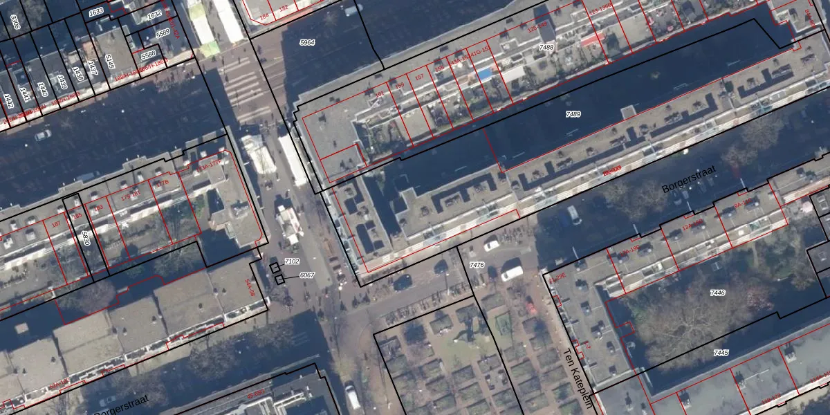 Borgerstraat 44-D is gelegen op kadastraal perceel ASD13Q7489. Deze kadastrale aanduiding is uniek en wordt gebruikt door het Kadaster om eigendomsrechten en andere zakelijke rechten vast te leggen. Het perceel maakt onderdeel uit van de kadastrale gemeente Amsterdam.