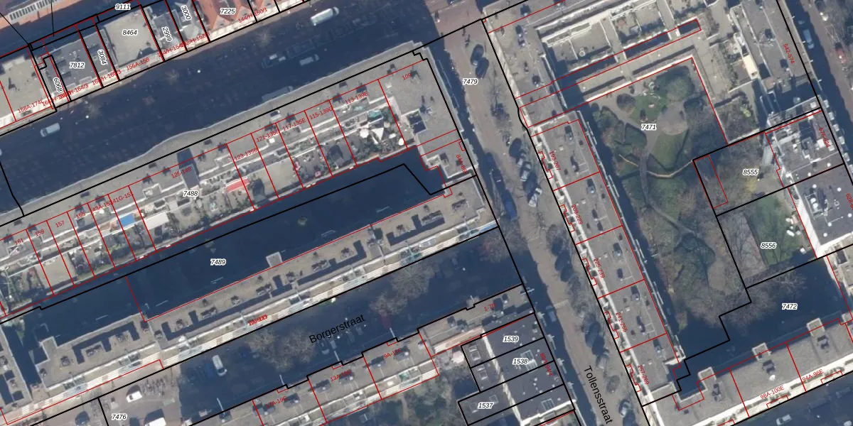 Borgerstraat 6-D is gelegen op kadastraal perceel ASD13Q7489. Deze kadastrale aanduiding is uniek en wordt gebruikt door het Kadaster om eigendomsrechten en andere zakelijke rechten vast te leggen. Het perceel maakt onderdeel uit van de kadastrale gemeente Amsterdam.