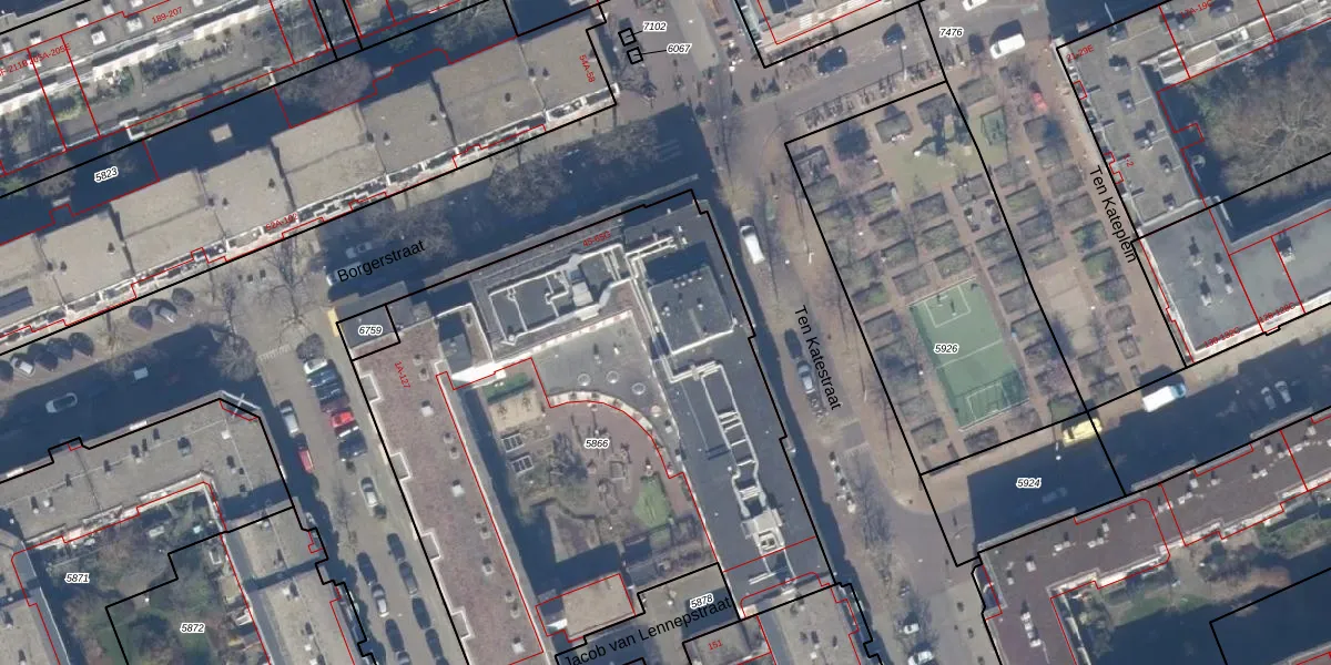 Het perceel waarop het adres ligt is ASD16-T-5866. De afkorting 'ASD16' staat voor kadastrale gemeente Amsterdam. De oppervlakte van het perceel is 3358 m². Dat is groter dan gemiddeld in Amsterdam, waar de gemiddelde perceeloppervlakte op 245,33 m² ligt. De grootste perceeloppervlakte in de kadastrale gemeente is 3,3 ha. De kleinste oppervlakte bedraagt 0 m². Op het perceel zijn 104 adressen aanwezig. In de Basisregistratie Kadaster (BRK) werden de grenzen van het perceel geregistreerd op 15-08-2008.