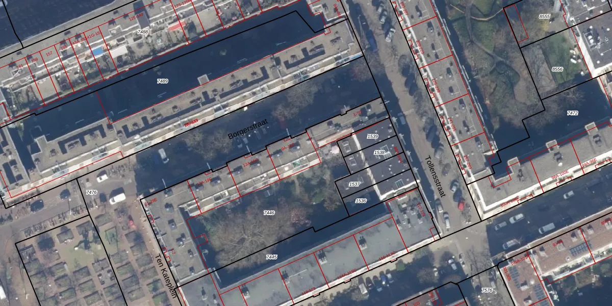 Borgerstraat 9-A is gelegen op kadastraal perceel ASD13Q7446. Deze kadastrale aanduiding is uniek en wordt gebruikt door het Kadaster om eigendomsrechten en andere zakelijke rechten vast te leggen. Het perceel maakt onderdeel uit van de kadastrale gemeente Amsterdam.