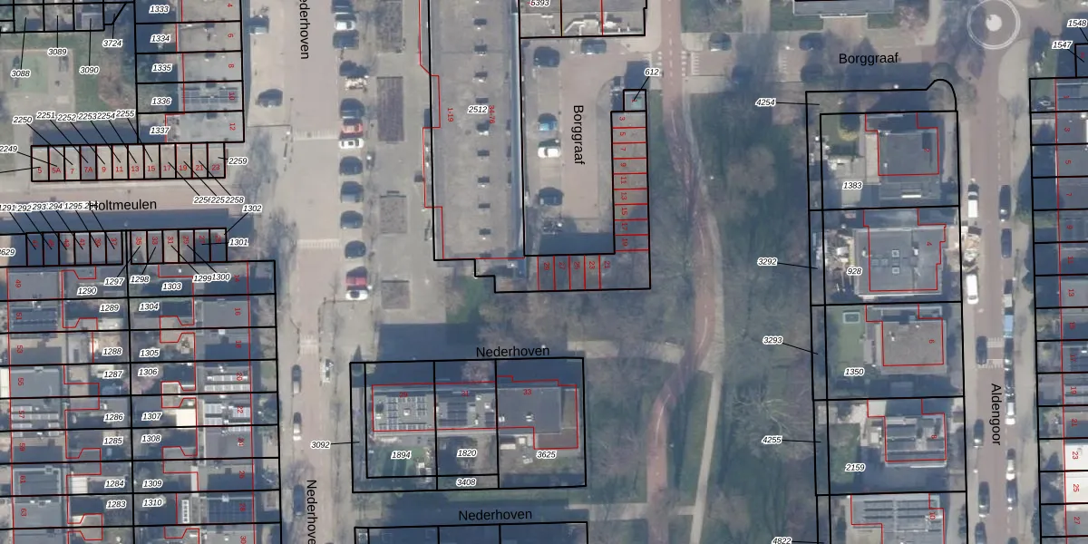 Het perceel waarop Borggraaf 29 staat heeft een oppervlakte van 1245 m². Dit is een zeer groot perceel. De perceeloppervlakte wordt geregistreerd door het Kadaster. Gedetailleerde informatie over de maten van dit perceel kunt u vinden in het rapport Kadastrale kaart met maatvoering van Borggraaf 29.
