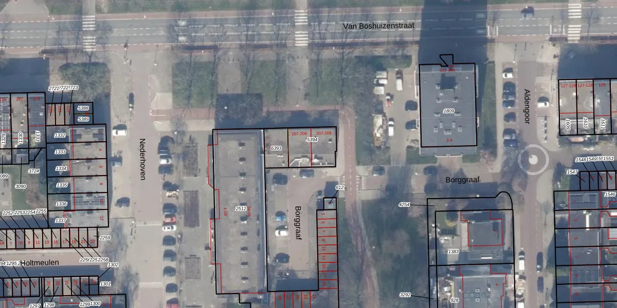 Het perceel waarop Borggraaf 8-B staat heeft een oppervlakte van 202 m². Dit is een middelgroot perceel. De perceeloppervlakte wordt geregistreerd door het Kadaster. Gedetailleerde informatie over de maten van dit perceel kunt u vinden in het rapport Kadastrale kaart met maatvoering van Borggraaf 8-B.