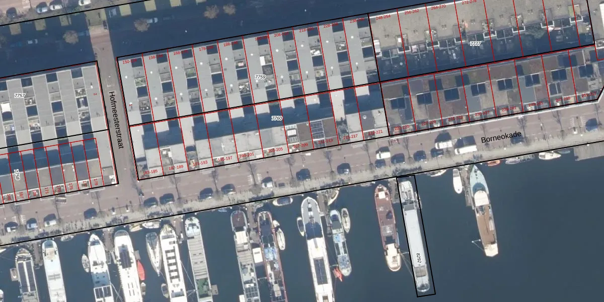 Borneokade 207 is gelegen op kadastraal perceel ASD02A7760. Deze kadastrale aanduiding is uniek en wordt gebruikt door het Kadaster om eigendomsrechten en andere zakelijke rechten vast te leggen. Het perceel maakt onderdeel uit van de kadastrale gemeente Amsterdam.