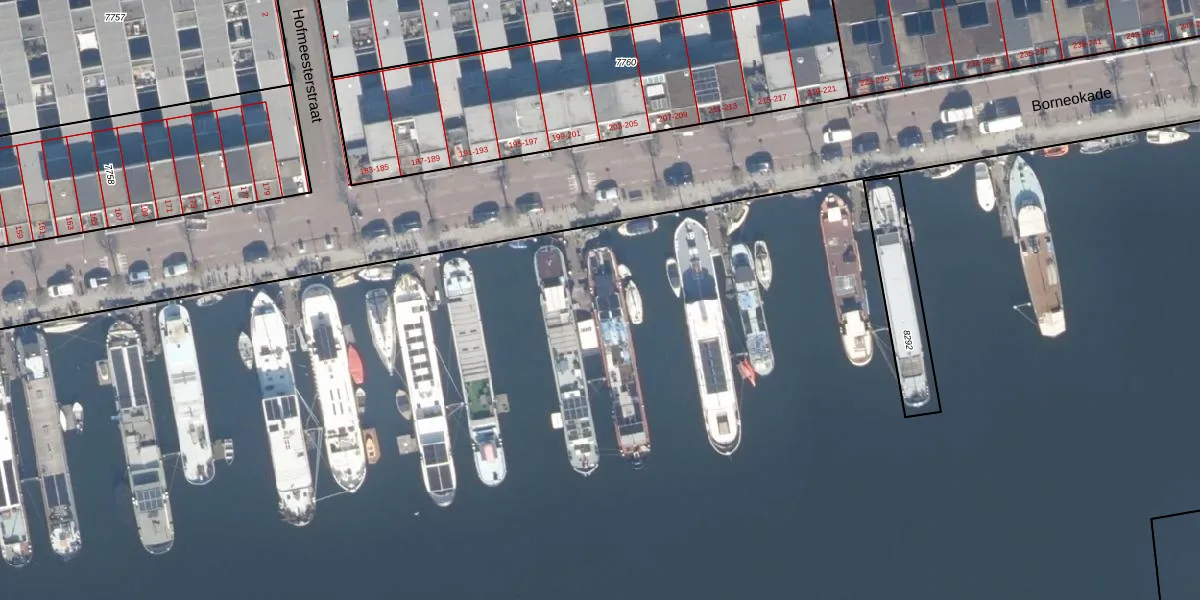 Borneokade 54 is gelegen op kadastraal perceel ASD02A8326. Deze kadastrale aanduiding is uniek en wordt gebruikt door het Kadaster om eigendomsrechten en andere zakelijke rechten vast te leggen. Het perceel maakt onderdeel uit van de kadastrale gemeente Amsterdam.