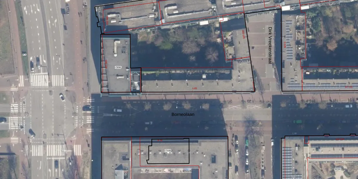 Borneolaan 1 is gelegen op kadastraal perceel ASD02A7807. Deze kadastrale aanduiding is uniek en wordt gebruikt door het Kadaster om eigendomsrechten en andere zakelijke rechten vast te leggen. Het perceel maakt onderdeel uit van de kadastrale gemeente Amsterdam.