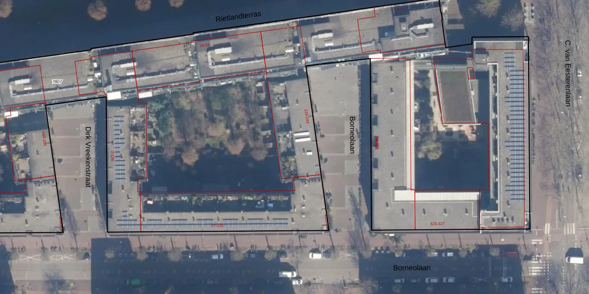 Het perceel waarop Borneolaan 153 staat heeft een oppervlakte van 1,3 ha. Dit is een zeer groot perceel. De perceeloppervlakte wordt geregistreerd door het Kadaster. Gedetailleerde informatie over de maten van dit perceel kunt u vinden in het rapport Kadastrale kaart met maatvoering van Borneolaan 153.