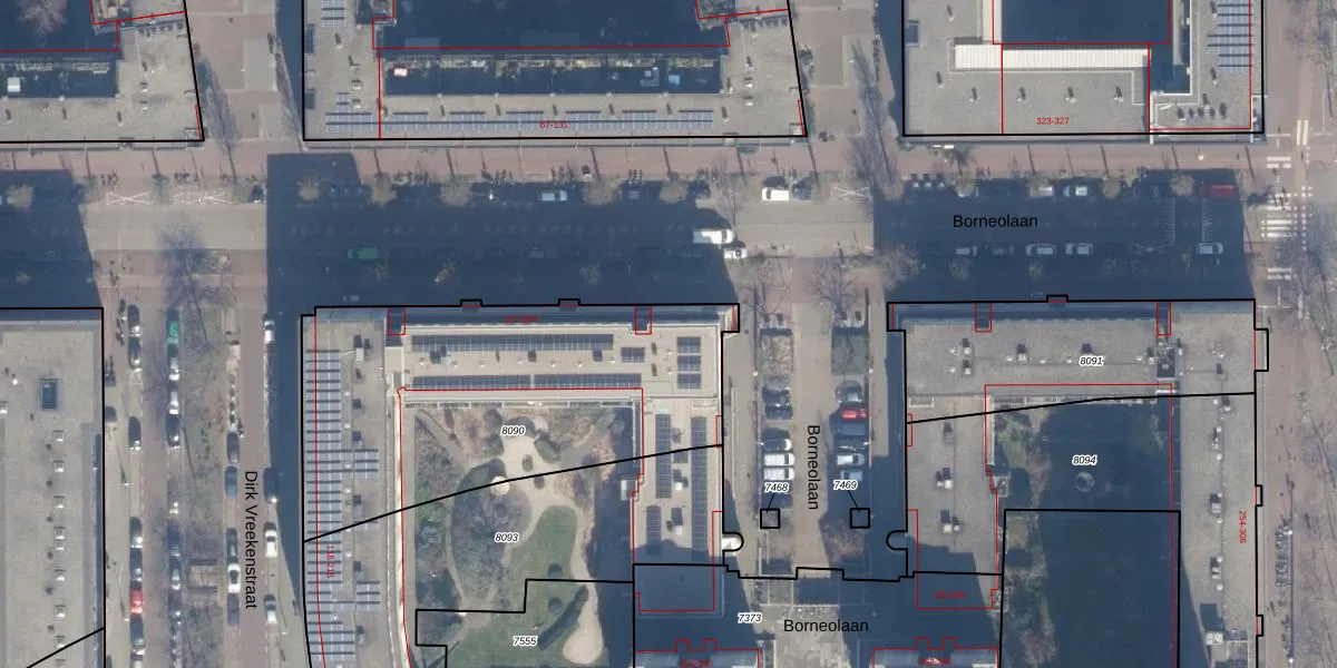 Borneolaan 158 is gelegen op kadastraal perceel ASD02A8090. Deze kadastrale aanduiding is uniek en wordt gebruikt door het Kadaster om eigendomsrechten en andere zakelijke rechten vast te leggen. Het perceel maakt onderdeel uit van de kadastrale gemeente Amsterdam.