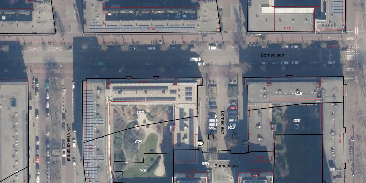 Borneolaan 164 is gelegen op kadastraal perceel ASD02A8090. Deze kadastrale aanduiding is uniek en wordt gebruikt door het Kadaster om eigendomsrechten en andere zakelijke rechten vast te leggen. Het perceel maakt onderdeel uit van de kadastrale gemeente Amsterdam.