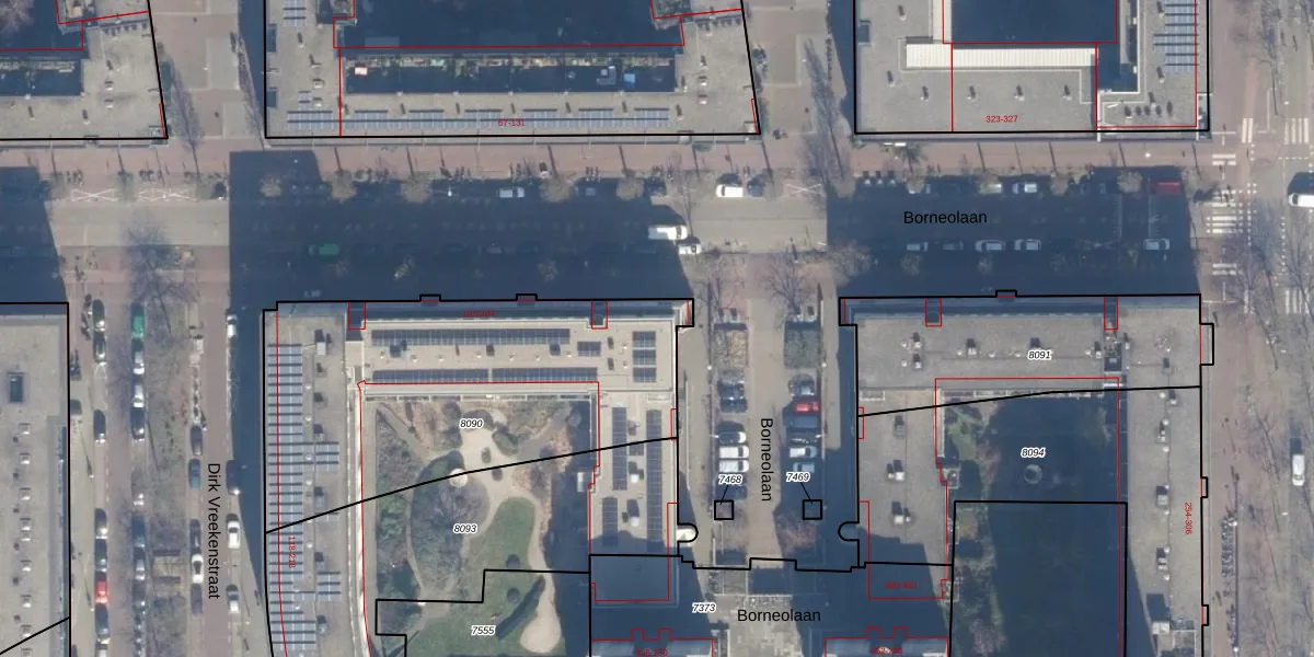 Borneolaan 176 is gelegen op kadastraal perceel ASD02A8090. Deze kadastrale aanduiding is uniek en wordt gebruikt door het Kadaster om eigendomsrechten en andere zakelijke rechten vast te leggen. Het perceel maakt onderdeel uit van de kadastrale gemeente Amsterdam.