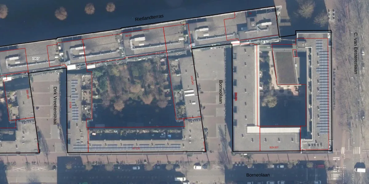 Borneolaan 187 is gelegen op kadastraal perceel ASD02A7807. Deze kadastrale aanduiding is uniek en wordt gebruikt door het Kadaster om eigendomsrechten en andere zakelijke rechten vast te leggen. Het perceel maakt onderdeel uit van de kadastrale gemeente Amsterdam.
