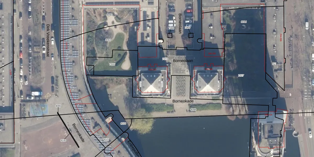 Borneolaan 250 is gelegen op kadastraal perceel ASD02A7373. Deze kadastrale aanduiding is uniek en wordt gebruikt door het Kadaster om eigendomsrechten en andere zakelijke rechten vast te leggen. Het perceel maakt onderdeel uit van de kadastrale gemeente Amsterdam.