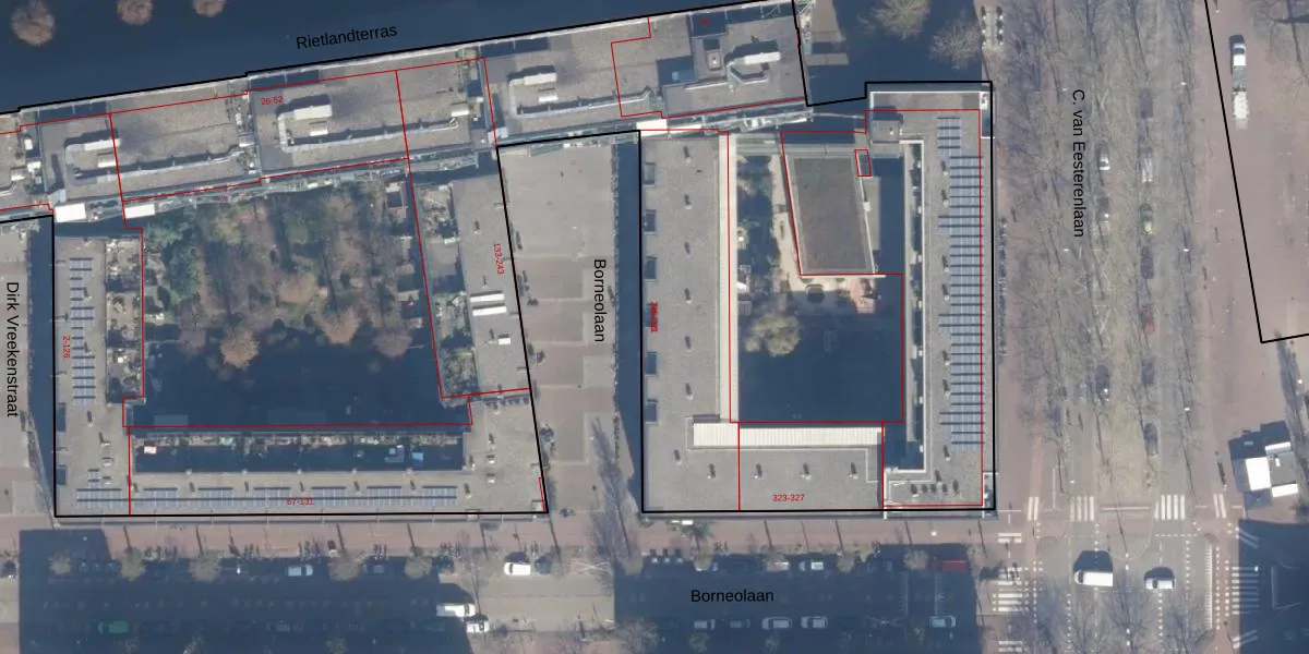 Het perceel waarop Borneolaan 257 staat heeft een oppervlakte van 1,3 ha. Dit is een zeer groot perceel. De perceeloppervlakte wordt geregistreerd door het Kadaster. Gedetailleerde informatie over de maten van dit perceel kunt u vinden in het rapport Kadastrale kaart met maatvoering van Borneolaan 257.