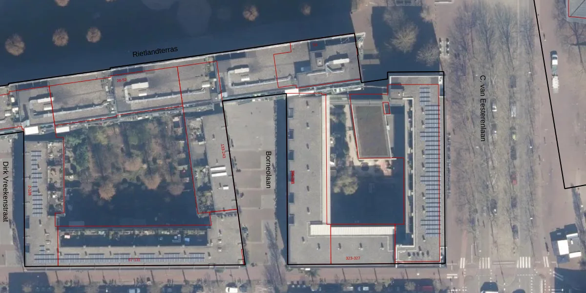 Het perceel waarop Borneolaan 313 staat heeft een oppervlakte van 1,3 ha. Dit is een zeer groot perceel. De perceeloppervlakte wordt geregistreerd door het Kadaster. Gedetailleerde informatie over de maten van dit perceel kunt u vinden in het rapport Kadastrale kaart met maatvoering van Borneolaan 313.