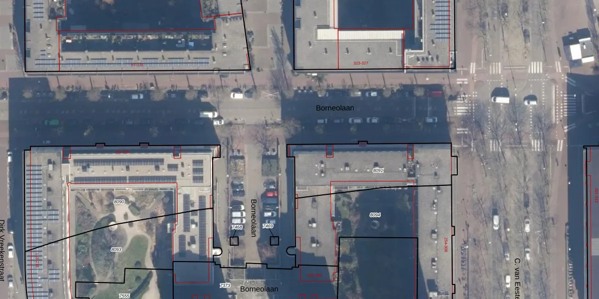 Borneolaan 320 is gelegen op kadastraal perceel ASD02A8091. Deze kadastrale aanduiding is uniek en wordt gebruikt door het Kadaster om eigendomsrechten en andere zakelijke rechten vast te leggen. Het perceel maakt onderdeel uit van de kadastrale gemeente Amsterdam.