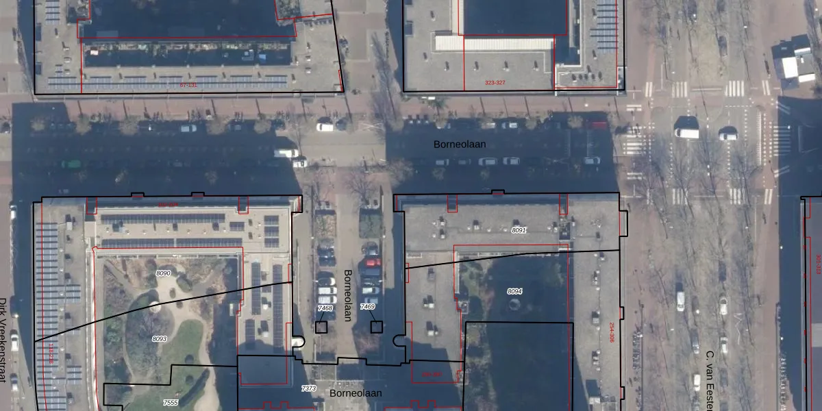 Borneolaan 322 is gelegen op kadastraal perceel ASD02A8091. Deze kadastrale aanduiding is uniek en wordt gebruikt door het Kadaster om eigendomsrechten en andere zakelijke rechten vast te leggen. Het perceel maakt onderdeel uit van de kadastrale gemeente Amsterdam.