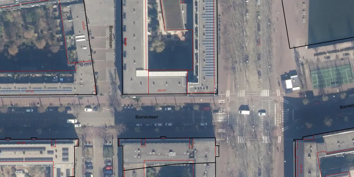 Borneolaan 327 is gelegen op kadastraal perceel ASD02A7807. Deze kadastrale aanduiding is uniek en wordt gebruikt door het Kadaster om eigendomsrechten en andere zakelijke rechten vast te leggen. Het perceel maakt onderdeel uit van de kadastrale gemeente Amsterdam.