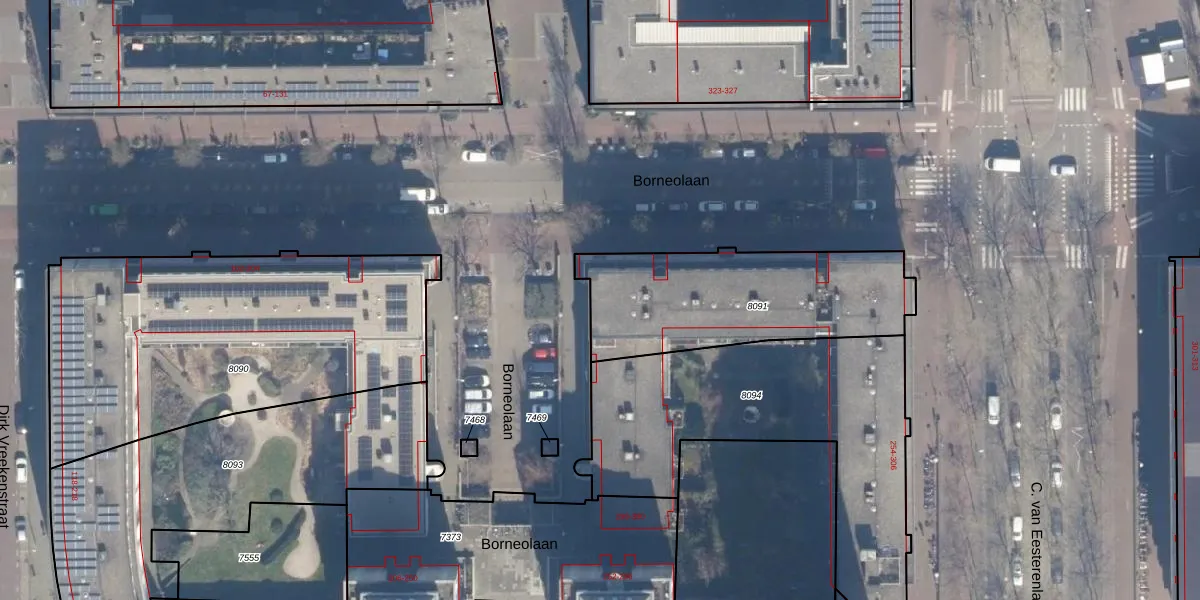 Borneolaan 332 is gelegen op kadastraal perceel ASD02A8091. Deze kadastrale aanduiding is uniek en wordt gebruikt door het Kadaster om eigendomsrechten en andere zakelijke rechten vast te leggen. Het perceel maakt onderdeel uit van de kadastrale gemeente Amsterdam.