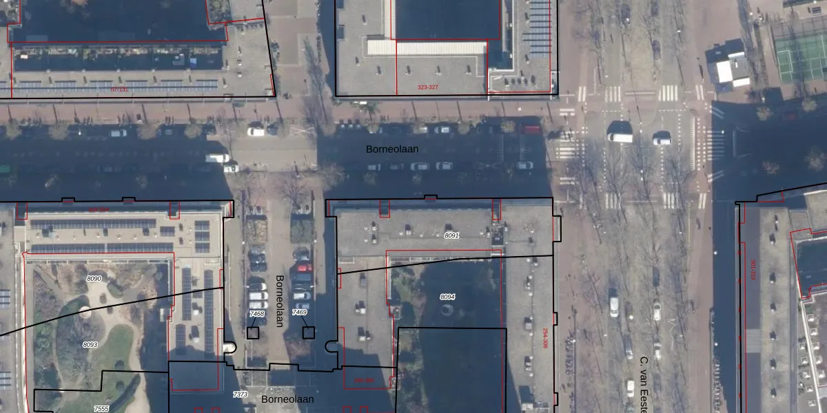 Borneolaan 350 is gelegen op kadastraal perceel ASD02A8091. Deze kadastrale aanduiding is uniek en wordt gebruikt door het Kadaster om eigendomsrechten en andere zakelijke rechten vast te leggen. Het perceel maakt onderdeel uit van de kadastrale gemeente Amsterdam.