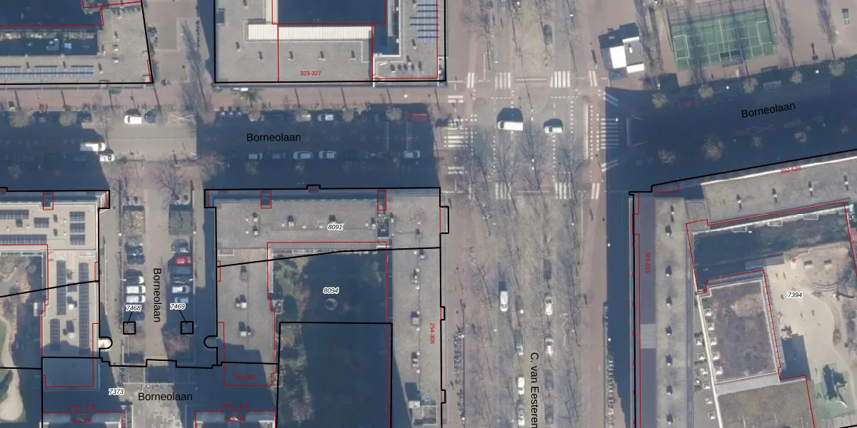 Borneolaan 388 is gelegen op kadastraal perceel ASD02A8091. Deze kadastrale aanduiding is uniek en wordt gebruikt door het Kadaster om eigendomsrechten en andere zakelijke rechten vast te leggen. Het perceel maakt onderdeel uit van de kadastrale gemeente Amsterdam.