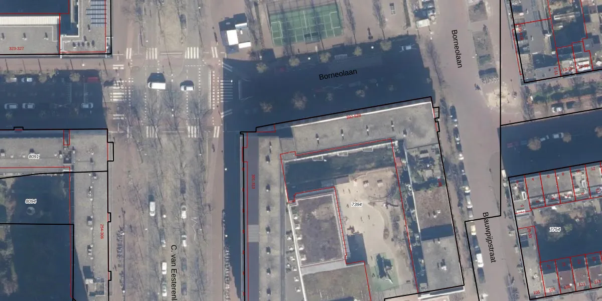 Borneolaan 430 is gelegen op kadastraal perceel ASD02A7394. Deze kadastrale aanduiding is uniek en wordt gebruikt door het Kadaster om eigendomsrechten en andere zakelijke rechten vast te leggen. Het perceel maakt onderdeel uit van de kadastrale gemeente Amsterdam.