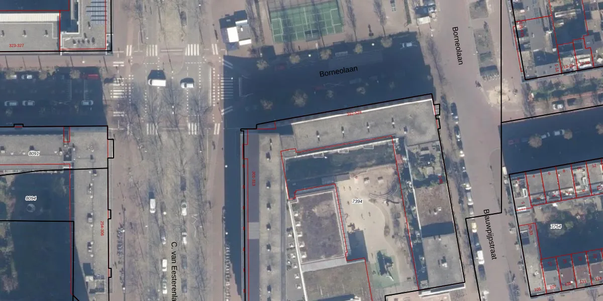 Borneolaan 432 is gelegen op kadastraal perceel ASD02A7394. Deze kadastrale aanduiding is uniek en wordt gebruikt door het Kadaster om eigendomsrechten en andere zakelijke rechten vast te leggen. Het perceel maakt onderdeel uit van de kadastrale gemeente Amsterdam.