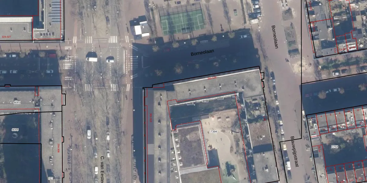 Borneolaan 442 is gelegen op kadastraal perceel ASD02A7394. Deze kadastrale aanduiding is uniek en wordt gebruikt door het Kadaster om eigendomsrechten en andere zakelijke rechten vast te leggen. Het perceel maakt onderdeel uit van de kadastrale gemeente Amsterdam.