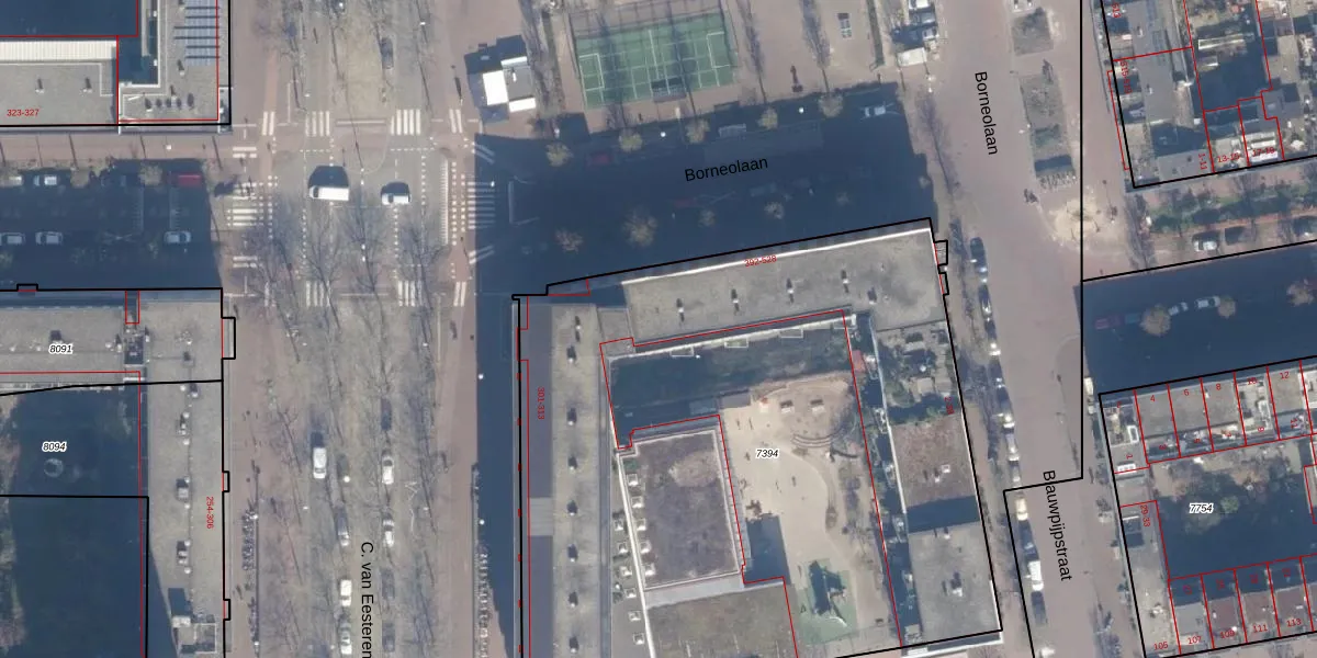Borneolaan 446 is gelegen op kadastraal perceel ASD02A7394. Deze kadastrale aanduiding is uniek en wordt gebruikt door het Kadaster om eigendomsrechten en andere zakelijke rechten vast te leggen. Het perceel maakt onderdeel uit van de kadastrale gemeente Amsterdam.