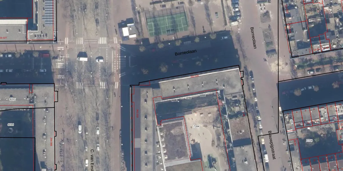 Borneolaan 452 is gelegen op kadastraal perceel ASD02A7394. Deze kadastrale aanduiding is uniek en wordt gebruikt door het Kadaster om eigendomsrechten en andere zakelijke rechten vast te leggen. Het perceel maakt onderdeel uit van de kadastrale gemeente Amsterdam.
