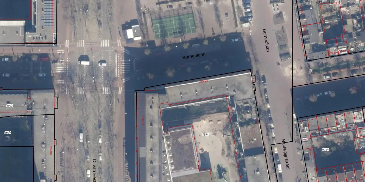 Borneolaan 474 is gelegen op kadastraal perceel ASD02A7394. Deze kadastrale aanduiding is uniek en wordt gebruikt door het Kadaster om eigendomsrechten en andere zakelijke rechten vast te leggen. Het perceel maakt onderdeel uit van de kadastrale gemeente Amsterdam.