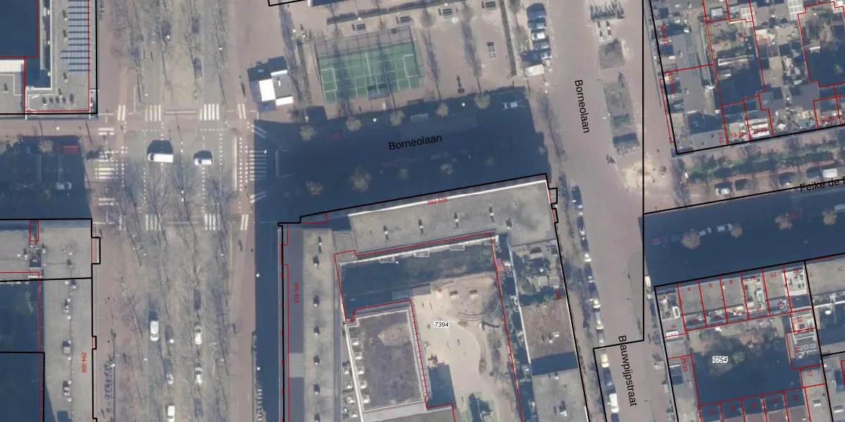 Borneolaan 490 is gelegen op kadastraal perceel ASD02A7394. Deze kadastrale aanduiding is uniek en wordt gebruikt door het Kadaster om eigendomsrechten en andere zakelijke rechten vast te leggen. Het perceel maakt onderdeel uit van de kadastrale gemeente Amsterdam.