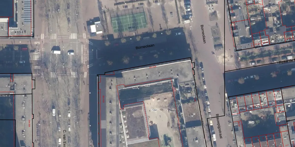 Borneolaan 494 is gelegen op kadastraal perceel ASD02A7394. Deze kadastrale aanduiding is uniek en wordt gebruikt door het Kadaster om eigendomsrechten en andere zakelijke rechten vast te leggen. Het perceel maakt onderdeel uit van de kadastrale gemeente Amsterdam.