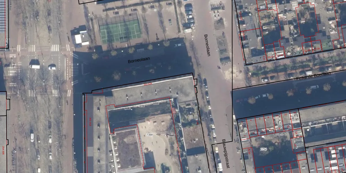 Borneolaan 500 is gelegen op kadastraal perceel ASD02A7394. Deze kadastrale aanduiding is uniek en wordt gebruikt door het Kadaster om eigendomsrechten en andere zakelijke rechten vast te leggen. Het perceel maakt onderdeel uit van de kadastrale gemeente Amsterdam.