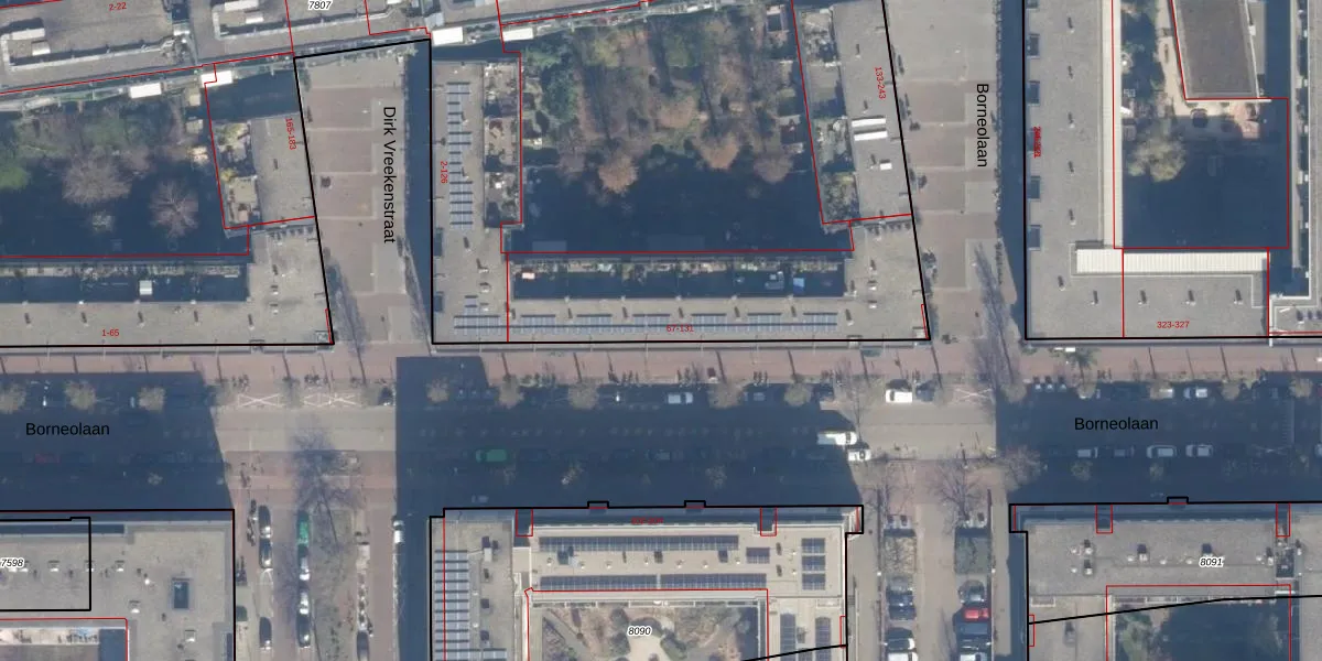 Borneolaan 91 is gelegen op kadastraal perceel ASD02A7807. Deze kadastrale aanduiding is uniek en wordt gebruikt door het Kadaster om eigendomsrechten en andere zakelijke rechten vast te leggen. Het perceel maakt onderdeel uit van de kadastrale gemeente Amsterdam.