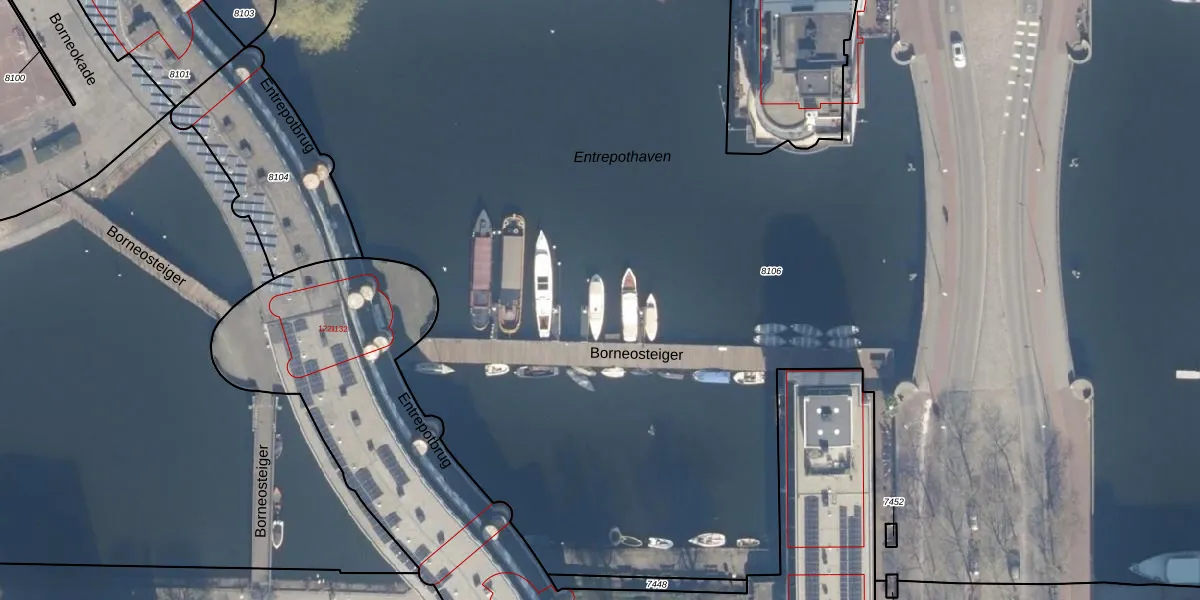 Borneosteiger 6 is gelegen op kadastraal perceel ASD02A8106. Deze kadastrale aanduiding is uniek en wordt gebruikt door het Kadaster om eigendomsrechten en andere zakelijke rechten vast te leggen. Het perceel maakt onderdeel uit van de kadastrale gemeente Amsterdam.