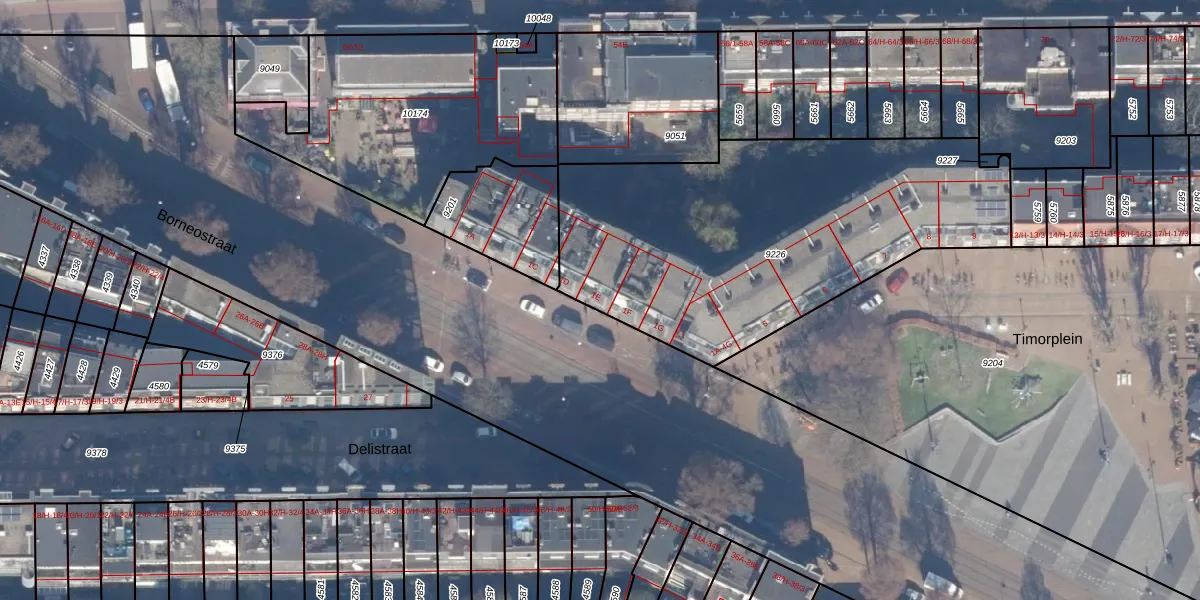 Borneostraat 1-E is gelegen op kadastraal perceel ASD15S9226. Deze kadastrale aanduiding is uniek en wordt gebruikt door het Kadaster om eigendomsrechten en andere zakelijke rechten vast te leggen. Het perceel maakt onderdeel uit van de kadastrale gemeente Amsterdam.