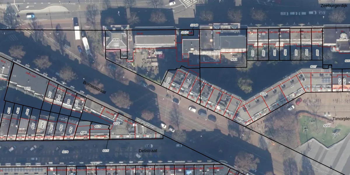 Borneostraat 1-B is gelegen op kadastraal perceel ASD15S9201. Deze kadastrale aanduiding is uniek en wordt gebruikt door het Kadaster om eigendomsrechten en andere zakelijke rechten vast te leggen. Het perceel maakt onderdeel uit van de kadastrale gemeente Amsterdam.