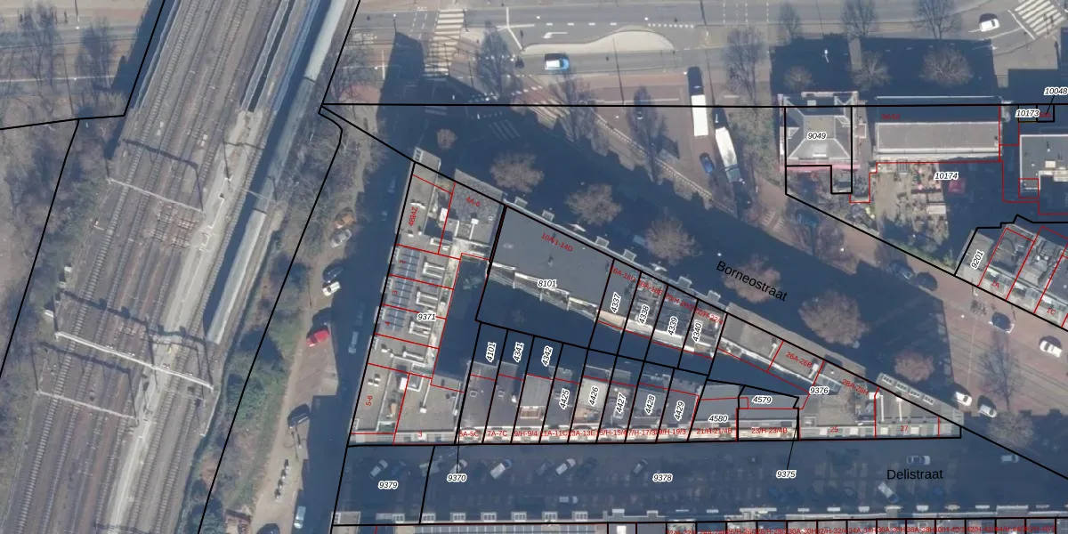 Borneostraat 10-C is gelegen op kadastraal perceel ASD15S8101. Deze kadastrale aanduiding is uniek en wordt gebruikt door het Kadaster om eigendomsrechten en andere zakelijke rechten vast te leggen. Het perceel maakt onderdeel uit van de kadastrale gemeente Amsterdam.
