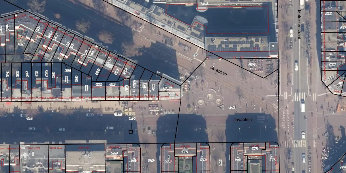 Het adres is gelegen op perceel 5641 in de sectie S en de kadastrale gemeente Amsterdam. De kadastrale aanduiding is aldus ASD15-S-5641. Het perceel is 78 m² groot. Dat is kleiner dan de gemiddelde perceeloppervlakte in Amsterdam, dat op 537,06 m² ligt. De grootste perceeloppervlakte in de kadastrale gemeente is 14,5 ha. De kleinste oppervlakte bedraagt 0 m². Op het perceel liggen in totaal 5 adressen. De laatste wijziging in het de Basisregistratie Kadaster (BRK) was op 28-08-2009.