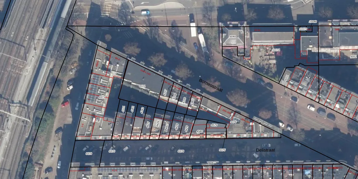 Borneostraat 18-D is gelegen op kadastraal perceel ASD15S4338. Deze kadastrale aanduiding is uniek en wordt gebruikt door het Kadaster om eigendomsrechten en andere zakelijke rechten vast te leggen. Het perceel maakt onderdeel uit van de kadastrale gemeente Amsterdam.