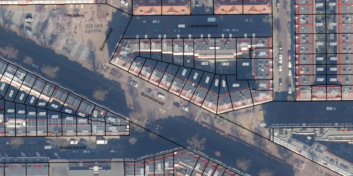 Het perceel waarop Borneostraat 21-3 staat heeft een oppervlakte van 108 m². Dit is een middelgroot perceel. De perceeloppervlakte wordt geregistreerd door het Kadaster. Gedetailleerde informatie over de maten van dit perceel kunt u vinden in het rapport Kadastrale kaart met maatvoering van Borneostraat 21-3.