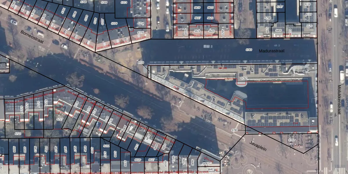 Borneostraat 33 is gelegen op kadastraal perceel ASD15S9782. Deze kadastrale aanduiding is uniek en wordt gebruikt door het Kadaster om eigendomsrechten en andere zakelijke rechten vast te leggen. Het perceel maakt onderdeel uit van de kadastrale gemeente Amsterdam.