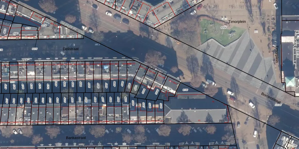 Borneostraat 34-B is gelegen op kadastraal perceel ASD15S5544. Deze kadastrale aanduiding is uniek en wordt gebruikt door het Kadaster om eigendomsrechten en andere zakelijke rechten vast te leggen. Het perceel maakt onderdeel uit van de kadastrale gemeente Amsterdam.