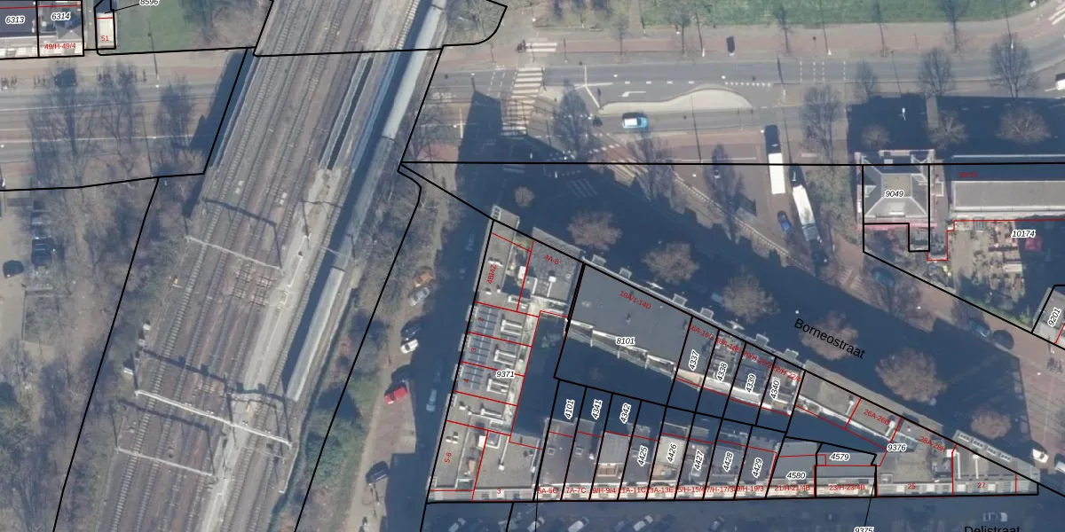 Borneostraat 4-F is gelegen op kadastraal perceel ASD15S9371. Deze kadastrale aanduiding is uniek en wordt gebruikt door het Kadaster om eigendomsrechten en andere zakelijke rechten vast te leggen. Het perceel maakt onderdeel uit van de kadastrale gemeente Amsterdam.